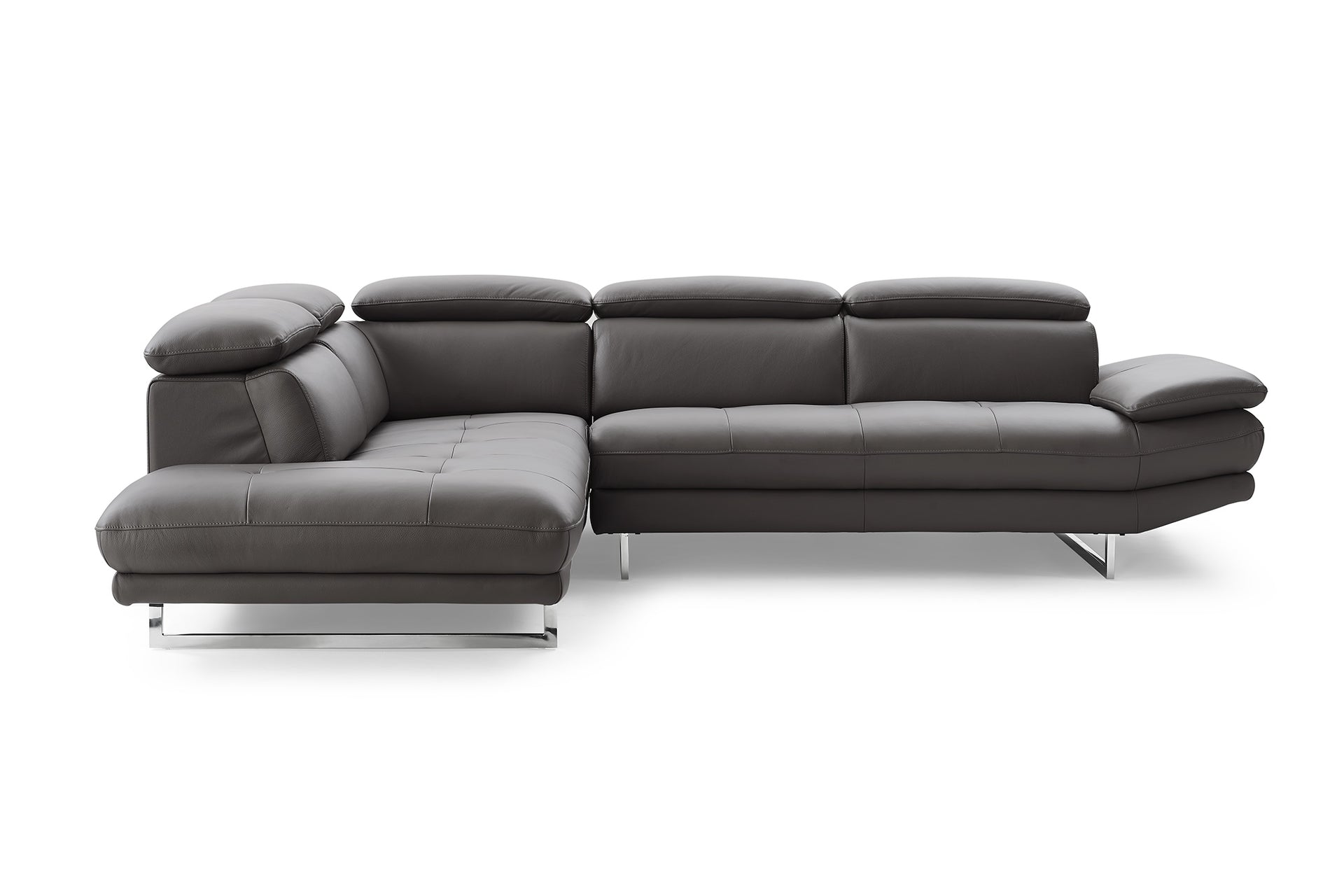 Made of the highest quality, supple leather, this dark gray genuine leather l shaped two piece sofa and chaise sectional will be the star of your space. The high-grade premium leather used makes your lounging luxuriously comfortable and adds an elegant appeal to your space. Solid colors give you lots of decorative options and are easy to work into your decor scheme. Pillow top arms offer a comfy place to rest. Silver metal legs effortlessly elevate the room and add a touch of contemporary design. A great showpiece for your room, this sectional is a must have. 29-inch H x 110-inch W x 88-inch D
