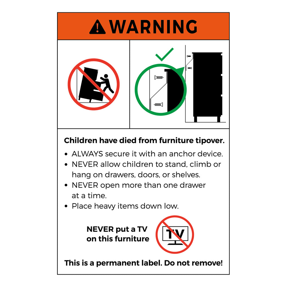 (a) always secure this furniture with an anchor device;