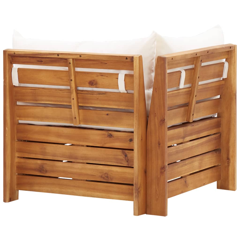 This wooden corner sofa combines style and functionality, and is designed to be used both indoors and outdoors. Made of solid acacia wood, the sofa is weather resistant and highly durable. It is also lightweight and modular, which makes it completely flexible and easy to move around to suit any setting. The thick, removable cushions are highly comfortable. You can combine it with other middle seating, table that is available in the drop down menu, and create your personal garden sofa configurations! You can find examples in the last one picture. Note: We recommend covering the seat in the rain, snow and frost.